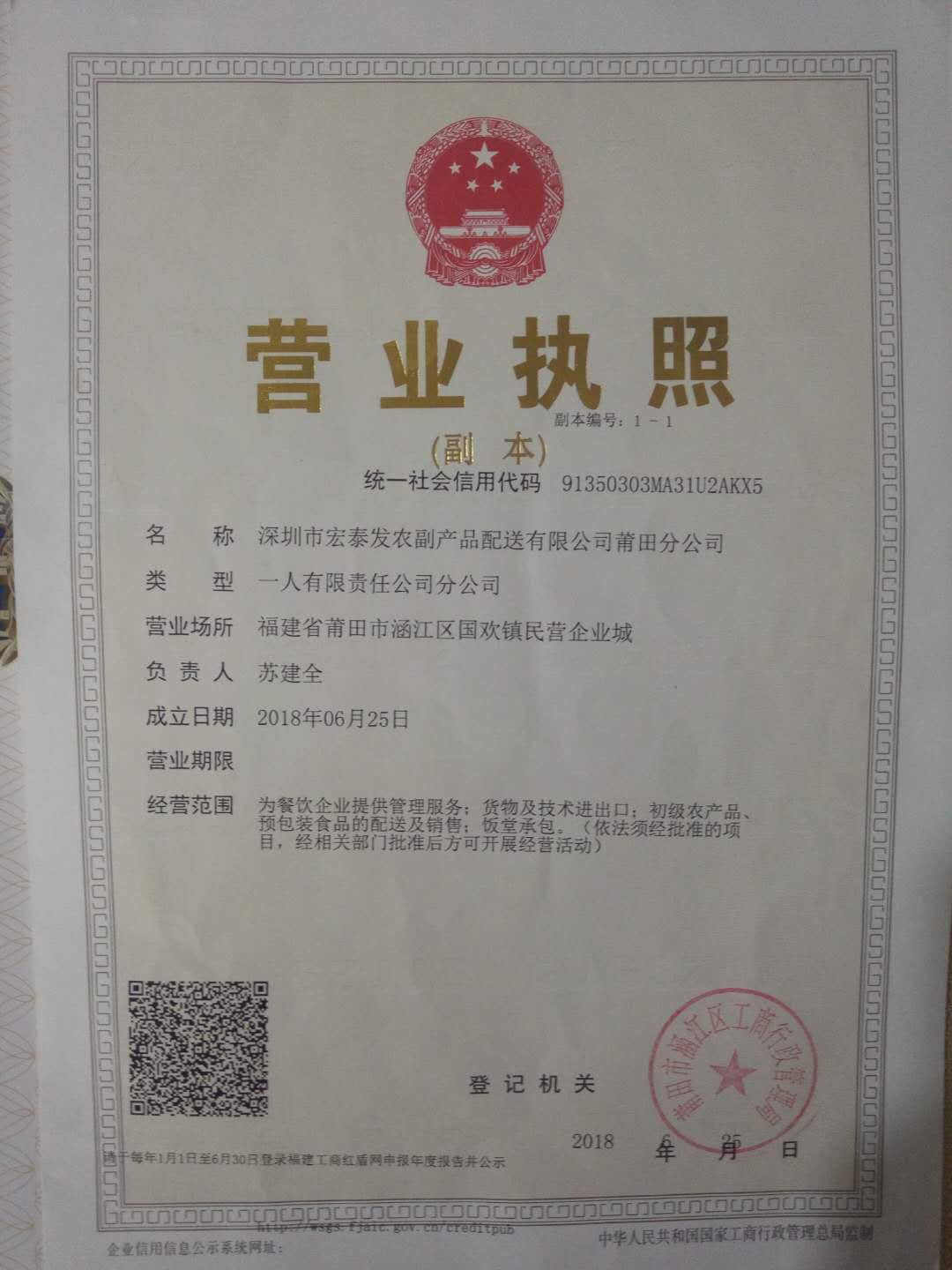 歡迎來(lái)到深圳市宏泰發(fā)農(nóng)副產(chǎn)品配送有限公司莆田分公司!